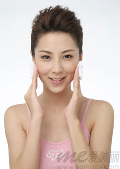 step2:全脸用不含收缩成分的爽肤水再次由下往上擦脸,主要来清洁滋润皮肤,时间不要太长。