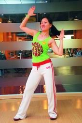 健身房里的街舞在原本的黑人街舞上加入了更多的活力元素,把抑郁、颓废的精神面貌减少了很多,但是仍然以风格自由,脚步动作迅速多变为动作特点;音乐上强调节奏感和低重音的力量感;女孩街舞(girls hip-hop)相对男孩街舞而言,糅入了女人的性感和柔美,整体动作相对挺拔,练习过程中能够体会到整个身体的参与,达到在娱乐中健身的目的。