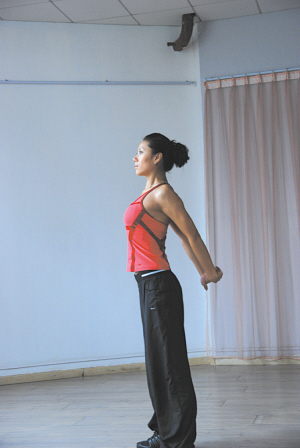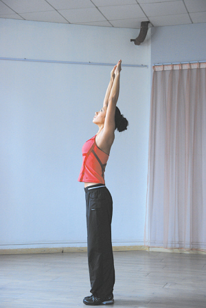(1)双脚并拢,身体垂直站立,双臂向上,上半身向上仰;