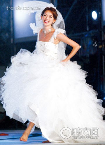 流行腰饰:在今年春夏,担心没有腰身的准新娘可以松一口气——以和服腰带为灵感来源的宽腰带再次席卷而来,宽度足足有15到20公分。这种带有强力塑形效果的配饰可以在视觉效果上突出腰部侧面线条,同时还能收紧腰部赘肉。当然我们不赞成全天候勒紧的方式,要知道如果影响了血液循环,反而更容易积攒脂肪。