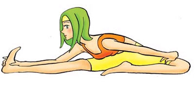 一脚膝盖向内侧弯曲,另一脚伸直,上身朝向已伸直脚的方向。
