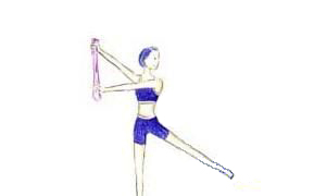 2、双手往右高举时,左脚跟着抬高。重复动作24回,换边再做。