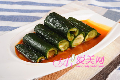 功效:三丝中的豆皮富含蛋白质,这些蛋白质可以帮助小肠进行快速地消化和吸收作用,同时还可以让黏在小肠上的细胞脱落,恢复小肠的循环运动的畅通状态。而海带作为一种富有营养价值的食物,除了可以帮助排毒消化之外,还同时具有良好的美容养颜功效,因此是夏日最受欢迎的一种食物之一。粉丝,则可以增加人的饱足感,帮助控制食欲。因此当这三样食物何为一体的时候,就可以控制食欲,并且还可以起到润肠通便、消化排毒的功效,这样,减肥瘦身也不再是一件难事了。