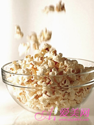 好多朋友看电影时都喜欢抱着大大筒的爆米花在那里拼了老命地啃,大多数人会吃掉大筒爆米花的45%多,所以应当只买小筒装的,而且不要黄油,因为黄油产生的热量比爆米花本身还多。同时小桶装的爆米花也能减少大家的食用量,既不浪费粮食,又能减肥,两全其美,何乐而不为呢?