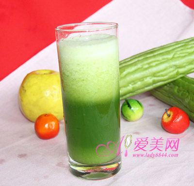 爱美网小编温馨提示:苦瓜减肥法中最简单的一款食谱,不喜欢苦瓜的苦味,可以用菠萝和蜂蜜一类甜味较足的食材来中和,而且为苦瓜汁增加香气和酸味,与苦瓜意外地很match!另外,苦瓜的瓜瓤和核富含共轭亚油酸,能有效歼灭体脂肪,在榨汁的时候也一同活用起来吧!