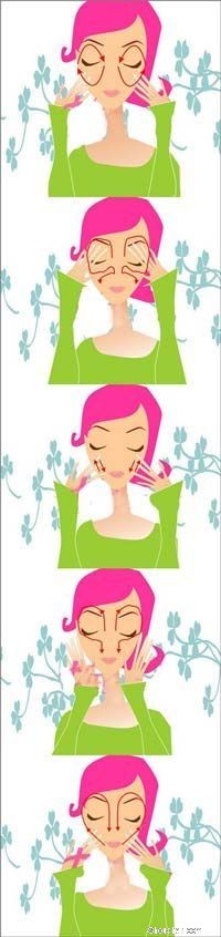 另外,按摩可以改善水胖脸型。这种类型的人在进行瘦脸时,必须针对脸部肌肉按以下方法给予按摩,它可以使肌肉柔软、体内循环畅通,达到瘦脸目的。