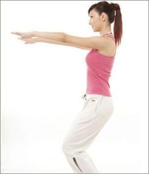 双脚并拢,稍稍弯曲膝盖,使身体重心下移。然后轻轻地伸直。重复30次。