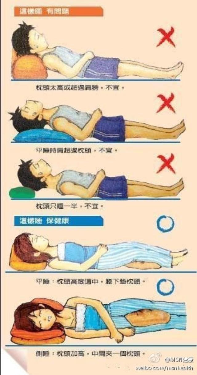 如何选择合适的枕头:很多人都因为落枕而烦恼过。一觉睡醒,不但没有让身体放松,反而脖子酸痛,一天工作中也不很舒适。看看图,教你正确的选枕头办法和习惯。
