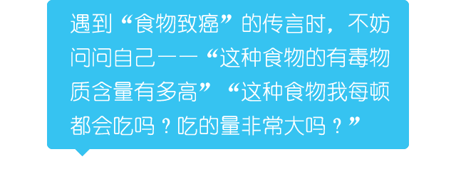 马力平表示,对于“食物致癌”的传言,老百姓应该有自己的判断力,千万不可以听风就是雨,听说某种食物会致癌,马上就再也不碰了。遇到“食物致癌”的传言时,大家可以先问自己这样几个问题。比如“这种食物的有毒物质含量有多高”、“这种食物我是每顿都会吃吗?吃的量非常大吗?”在查阅相关资料的同时可以向专业人士求助。此外,在日常生活中,绿叶菜、深色蔬果都是很好的抗癌食物,可以多选。