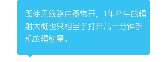 据他介绍,英国健康保护局估计,即使无线路由器常开,1年产生的辐射大概也只相当于打开几十分钟手机的辐射量。