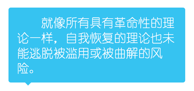 就像所有具有革命性的理论一样,自我恢复的理论也未能逃脱被滥用或被曲解的风险。鲍里斯·西吕尔尼克认为:“在所有让人感兴趣的理论身上都出现了一种情况,那就是每个人对这一理论都有自己的观点,就像以前人们对精神分析和遗传学都有自己的看法一样。但是,自我恢复不是灵丹妙药。它从来都不是万灵药。”鲍里斯·西吕尔尼克提醒,不能落入“圣人”情结:“这个无意识的过程不是‘圆满的故事’,不是某些人眼中‘社会成就’的近义词。它更像一个西部片。它是日积月累,慢慢编织成形的。在生活中,那些正在经历痛苦的人应该时刻清算与不幸之间的新旧欠账。”
