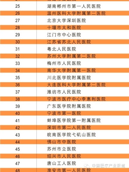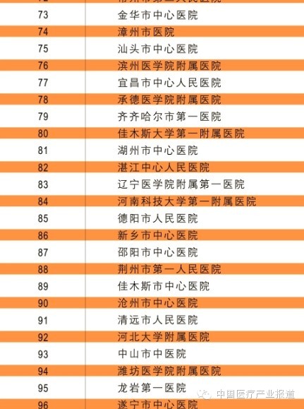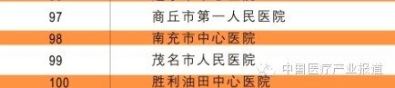 中国医院竞争力百强榜: