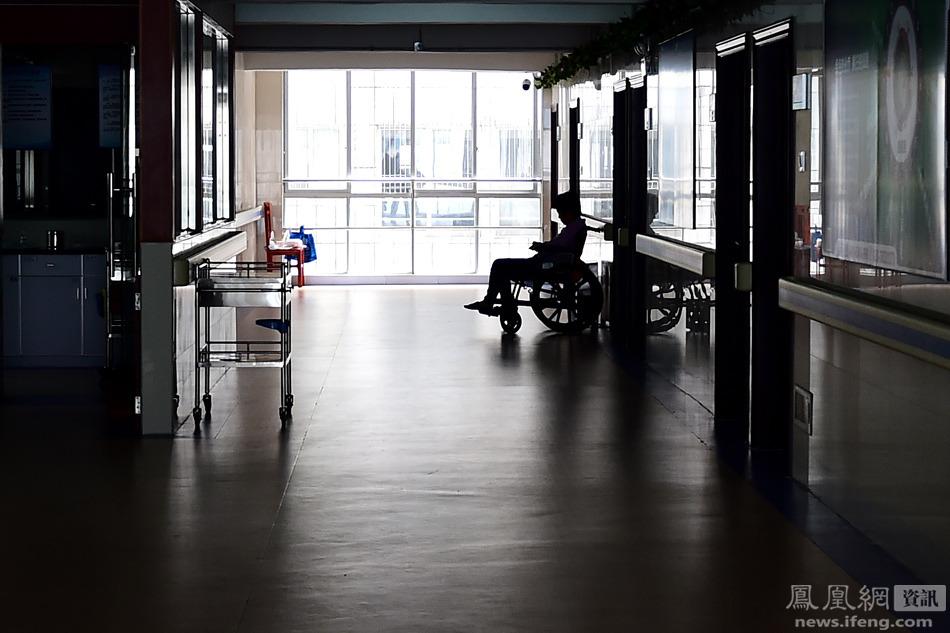 凤仙的病从高三那年就开始了,当时她经常觉得肚子痛,不舒服。她边吃药边学习,如愿考上广州美术学院。在大一下学期的一个夜晚,即2013年的5月8日晚,因为腹部剧痛,她离开了广州大学城,辗转清远、广州各大医院求医,再也没有回到校园。图为病房外,凤仙的妈妈独自一人。