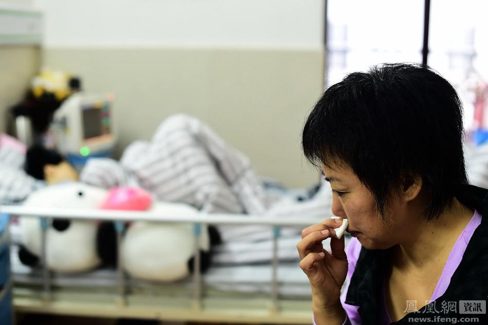 母亲则揪心地站在治疗室外站着,往女儿躺着的方向望着,一动不动。