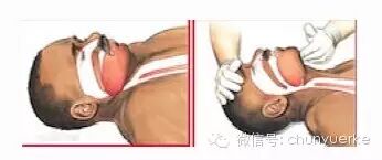 仰头提颏法开放气道:将一只手置于患者的前额,用力使其头部后仰;将另一只手的手指置于下颌下方,提起下颌,使颏骨上抬(如图)。