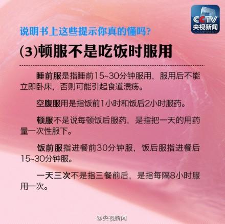 【药品说明书 你真的会看吗?】①禁用、忌用、慎用有什么区别?②你确信自己弄明白睡前服、空腹服用、顿服、饭前服、饭后服、一天三次的准确含义了吗?③保存阴凉处和冷藏分别指多少摄氏度的环境?④碰到“副作用尚不明确”怎么应对?9月是“全国安全用药月”,戳图↓↓学习药品说明书中你不懂的知识。
