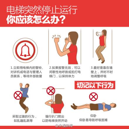 16日,温州一男子一脚踩空跌落电梯井底;15日,重庆一电梯故障,4名小孩被困;14日,华侨大学1名学生被卡电梯窒息死亡;……电梯安全事故层出不穷,掌握电梯自救方法,伤害并非不可避免。
