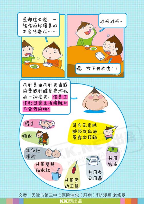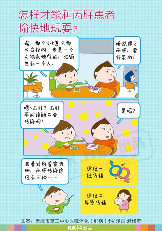 别看到丙肝患者就躲好吗,丙肝由丙肝病毒感染导致肝脏炎症坏死的疾病,但是工作和日常生活接触并不会传染。了解丙肝传播途径,我们又能和丙肝患者愉快地玩耍了~