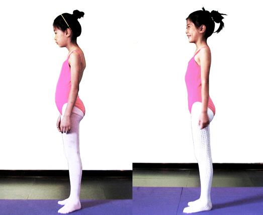 距墙一步距离站立,两臂上举,扶墙,上体尽量向前任,挺胸、凹腰,脚不能前移,胸贴住墙,保持4拍再还原。这个练习应经常性练习,以使少年儿童逐渐形成挺胸拔背的姿势。