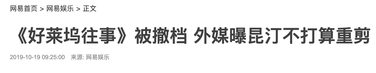 原定于本月25日上映的影片《好莱坞往事》早已过审,但还是被有关部门紧急撤档。据《好莱坞报道》透露,本片最大的撤档原因是李小龙的女儿李香凝,向有关部门举报此片涉嫌辱……然而,昆汀对撤档态度是无意重新剪辑,要么就上现有的版本,不上也就算了。
