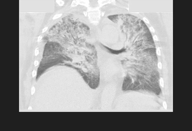 图2. 无数的肺部小结节,与粟粒型肺结核表现一致