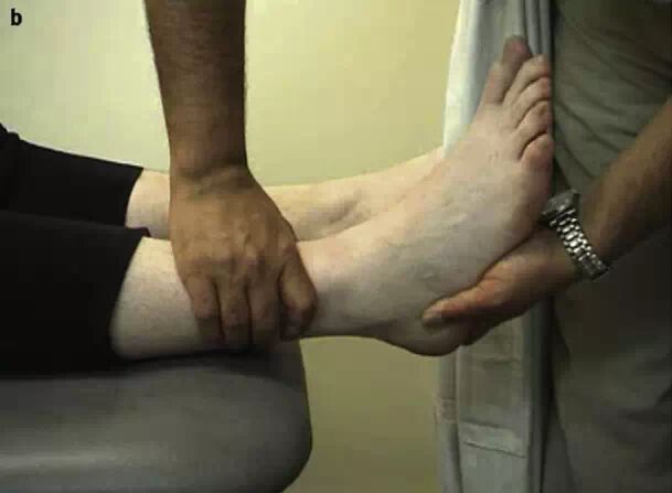 踝关节不稳通常会出现前抽屉试验以及距骨倾斜试验阳性,踝关节正位内翻应力位片上也可表现为距骨倾斜试验阳性,此外MRI有助于韧带撕裂情况的判断。